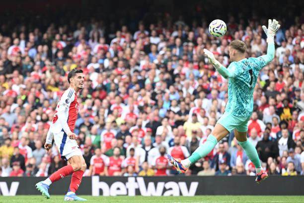 这张红牌也让枪手立刻付出了代价。布莱顿在占据人数优势之后立刻开始集结兵力发动狂攻,仅仅10分钟过后,阿森纳的中场被对手的直传洞穿,韦尔贝克单刀被拉亚封出,跟进的若昂·佩德罗补射空门得手,将比分扳平。阿尔特塔随后用卡拉菲奥里换下特罗萨尔,希望能够先稳住脚跟,之后又用马丁内利和津琴科先后替下了厄德高和廷伯。阿森纳在少一人作战的情况下仍然制造出绝杀比赛的机会,不过哈弗茨和萨卡的射门先后被费布吕亨扑出。双方随后都各有顾忌,1比1的比分被保持到了终场。