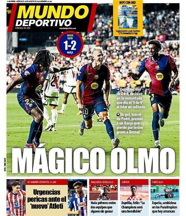 除了这两记集锦中的镜头,更重要的是他给全队带来了不少细节上的提升。《每日体育》评价奥尔莫的精彩首秀:“为球队带来了革命性的变化”;《世界体育》言简意赅:“神奇·奥尔莫”;《马卡》的标题则是:“亲吻圣人”,把奥尔莫捧为圣人;只有《阿斯》在头版角落淡淡写道:“奥尔莫回归”。